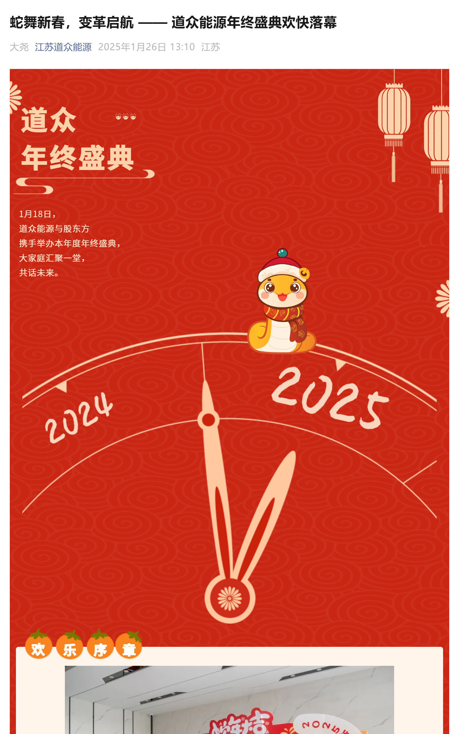 蛇舞新春,变革启航 —— 道众能源年终盛典欢快落幕 首页 / 新闻动态 / 公司新闻 公司新闻 admin_fme 2025-01-26 17:34:44 154 上一篇: 目标笃定,力出一孔——道众目标共识工作坊圆满举行 下一篇: 同心聚力铸荣光 繁星共耀谱新章——福清防异物监督团队融合工作坊圆满落幕